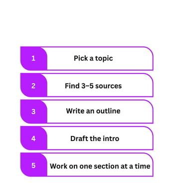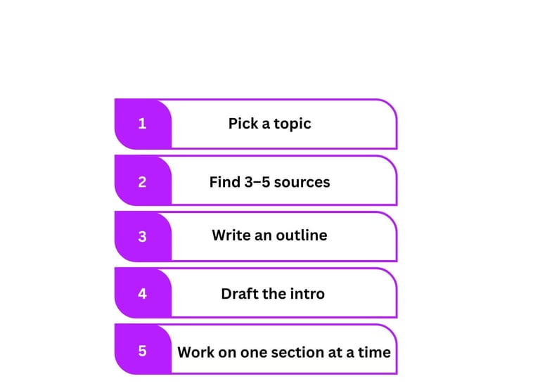 I’ll be honest—I’ve looked at a huge coursework or exam prep and thought, “How in the world am I supposed to deal with this…don't they have pity on us ?” It’s easy to get paralysed when a task feels too big. But here’s the secret: you don’t have to do it all at once. Break it down into small chunks. Let’s say you’ve got a research paper, for example:
